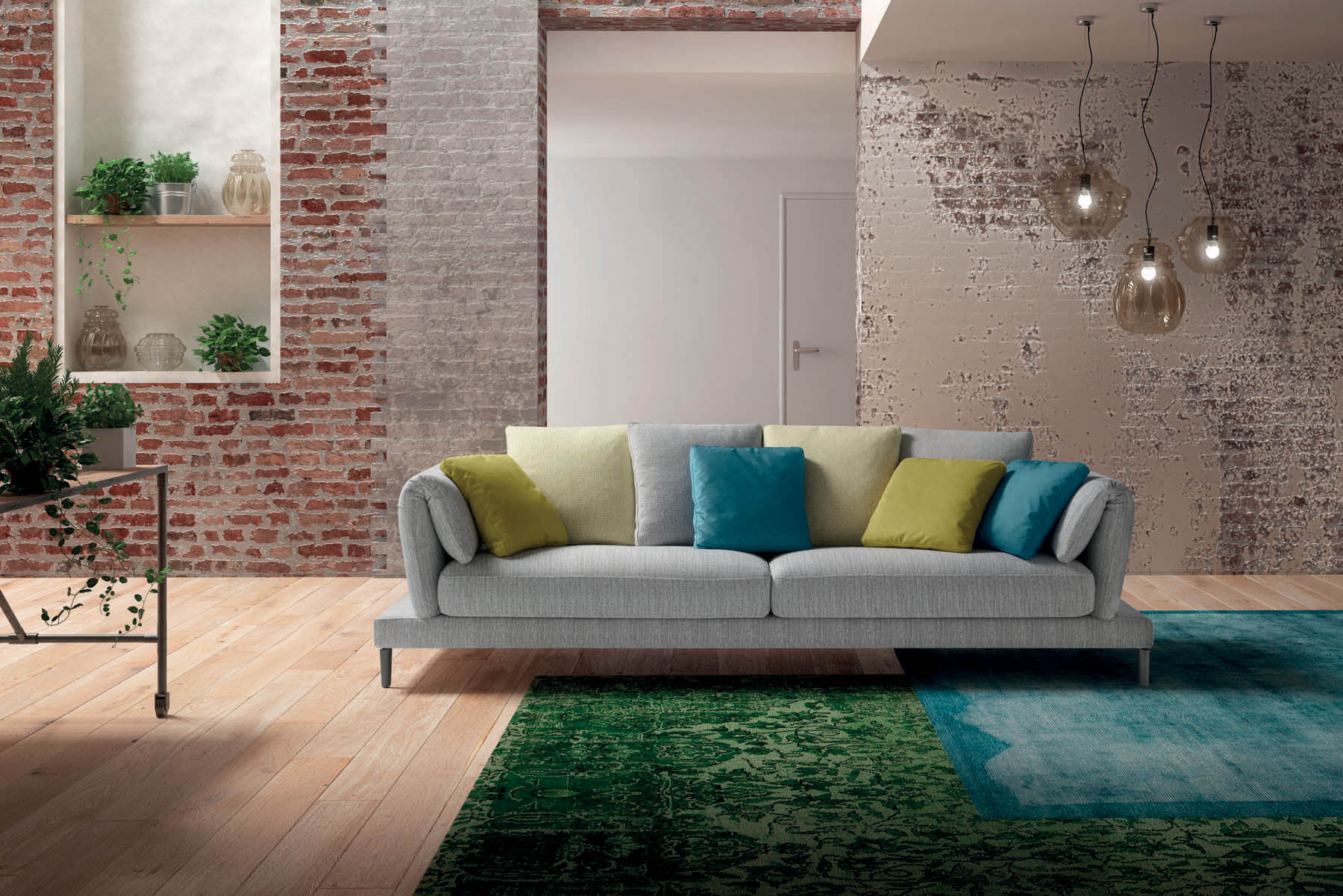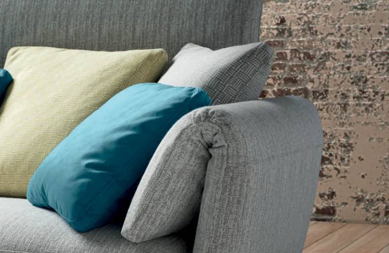 Il divano Upper Twist diventa espressione di comodità e creatività grazie alla possibilità di personalizzazione dei cuscini.