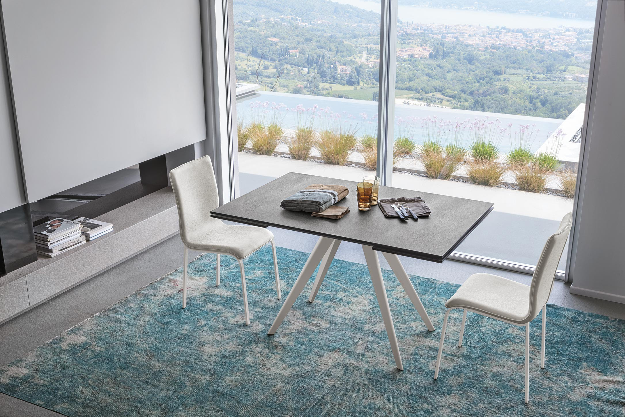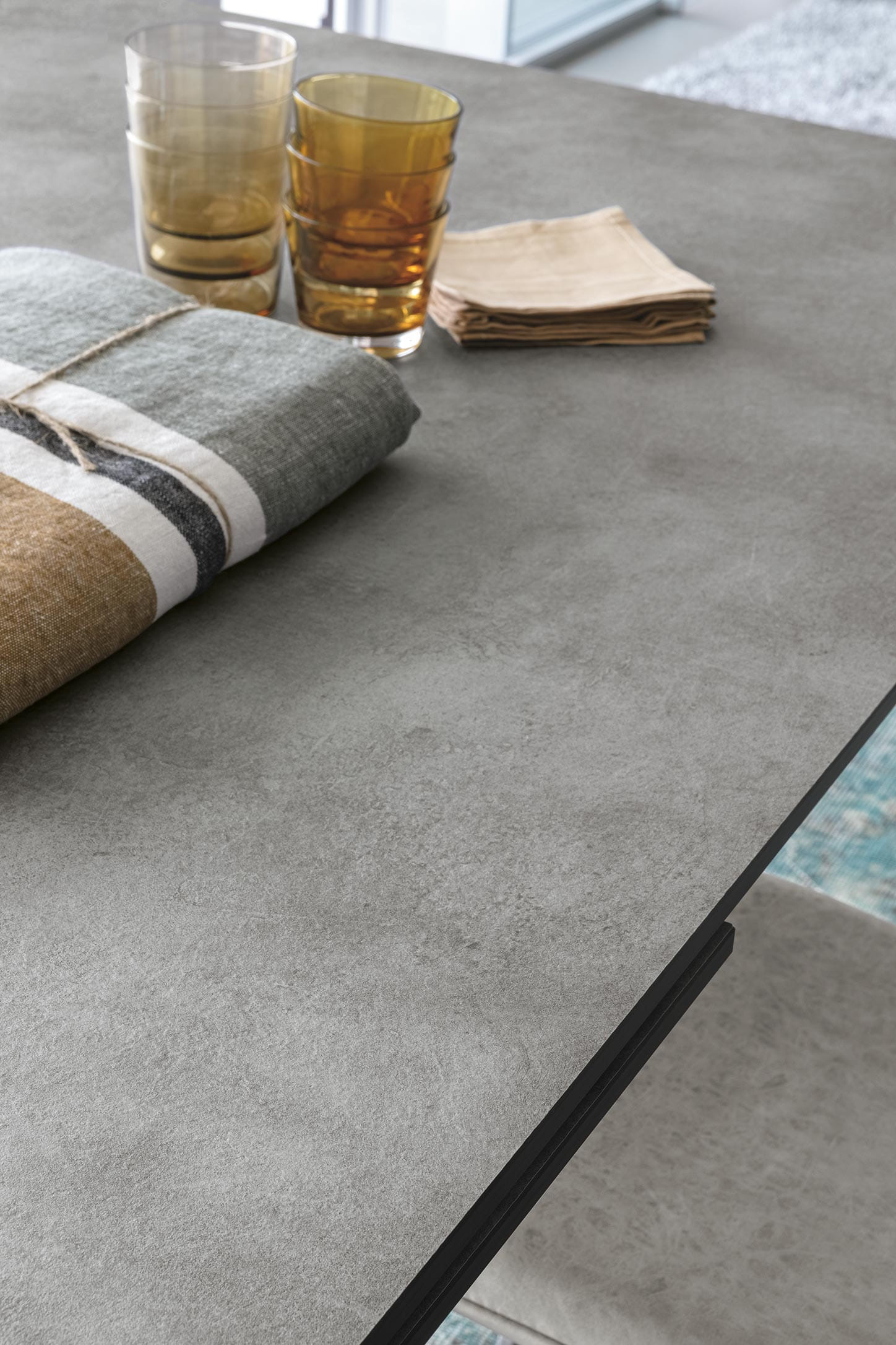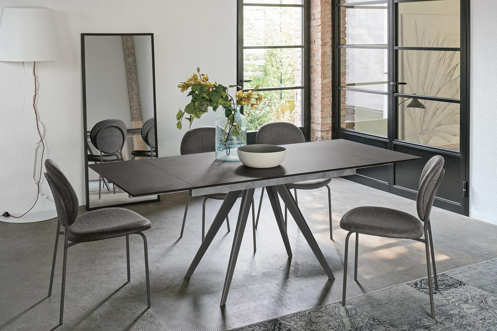 Tavolo allungabile con struttura in metallo vernciato piano ed allunghe laterali in HPL.