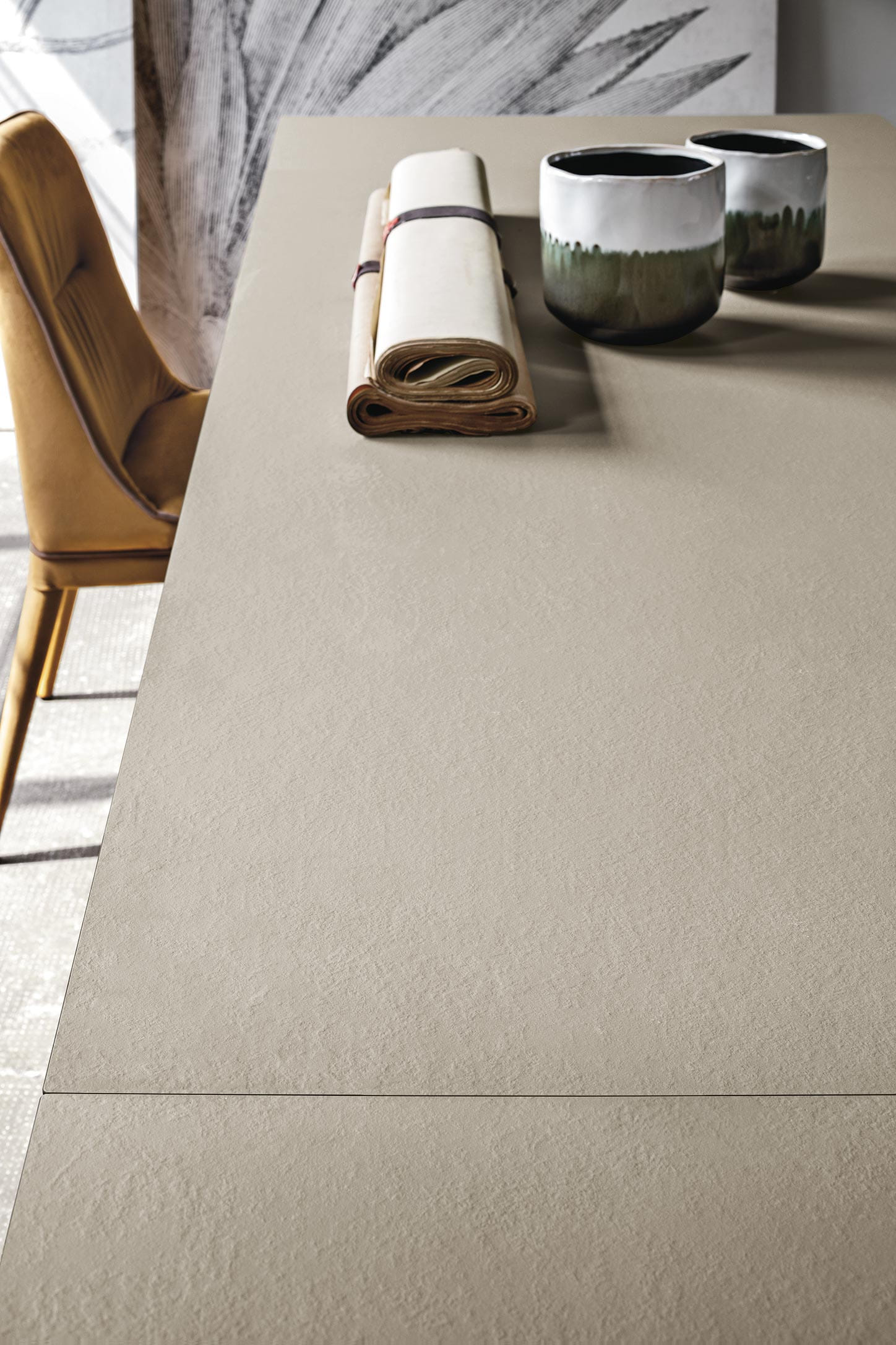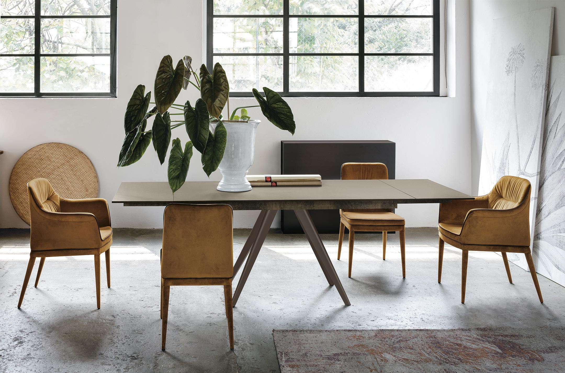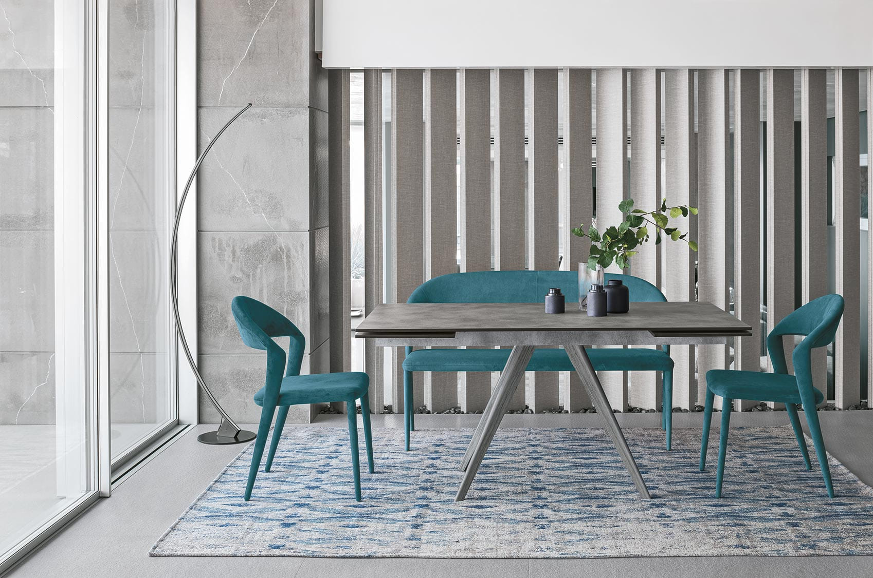 Tavolo allungabile con struttura in metallo vernciato piano ed allunghe laterali in HPL.